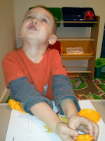 A fun word search game - you hide the words around the house - J.B. had to find them then write them out. He thought this was supper fun!!!