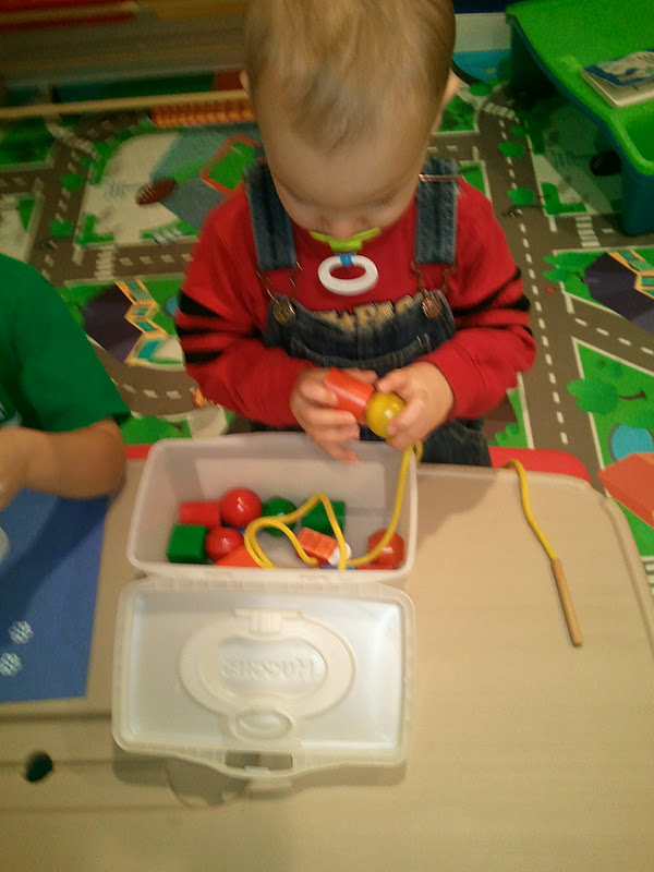 Mom's version of baby Jesus in a manger - so Jumping Bean was holding it and praying to Jesus